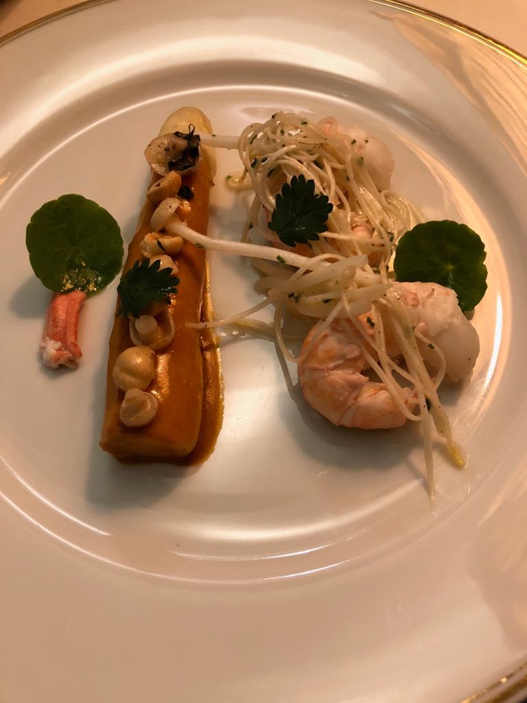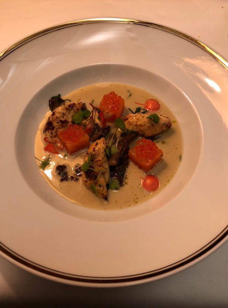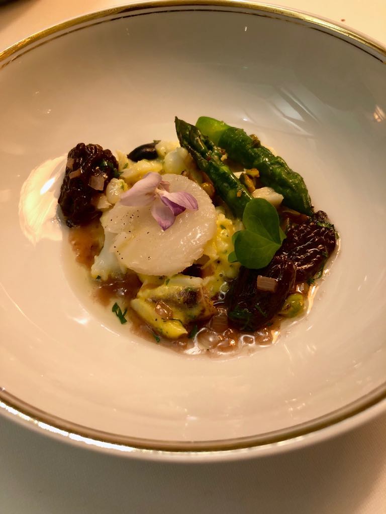 There was also a pre-appetizer of salted cod, in-season morels, green asparagus, grilled octopus, served with béarnaise and olive oil warmed with truffles. Truth be told, this was one of the best dishes I’ve ever had – the béarnaise and truffle were rich, the morels deliciously soft, the asparagus was a vivid green and crunchy, and the cod and the octopus brought the dish together and made it worthy of being served in a restaurant designed as a sailing club. The concept and execution here was flawless. For the starters, we had two contrasting dishes: one was a shadfish soup with sorrel, which was poured onto a deep plate with mushrooms, smoked adour salmon cubes (it’s a fattier variant of the wild salmon available in Europe, in particular in this region), a quenelle of herbs and xerez; the second was white asparagus with a light curry sauce (the chef’s tip of his hat to the cuisine of La Reunion), served with steamed langoustines that were sweet beyond reason, morels, orange-sage leaves and toasted hazelnuts. Both dishes were exquisite – well-rounded flavours that played well with each other (and the wine, I might add), and made with produce which you could taste was as close to farm to table as you could get.